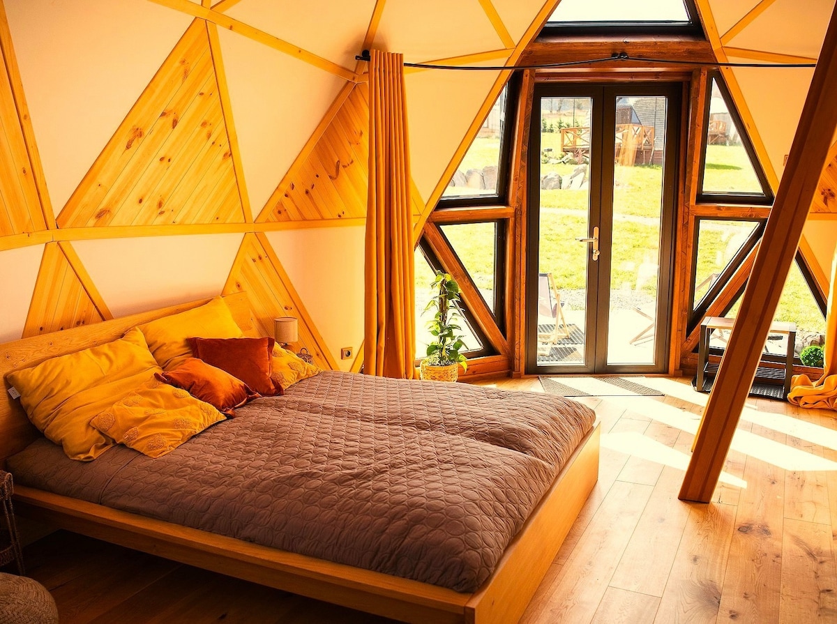 4 Żywioły to cisza, góry, sauna i bliskość natury – odpoczynek zaczyna się tu od pierwszej chwili. Czekają tu 4 całoroczne kopuły i 4 jurty z łazienką, wygodnymi łóżkami i prywatnym tarasem. Czas płynie bez pośpiechu – z książkami, planszówkami i ogniskiem. Na życzenie podajemy pod drzwi pyszne kosze śniadaniowe. Idealne dla rodzin, par i czworonogów. Blisko szlaków, Czarnej Góry i zalewu.