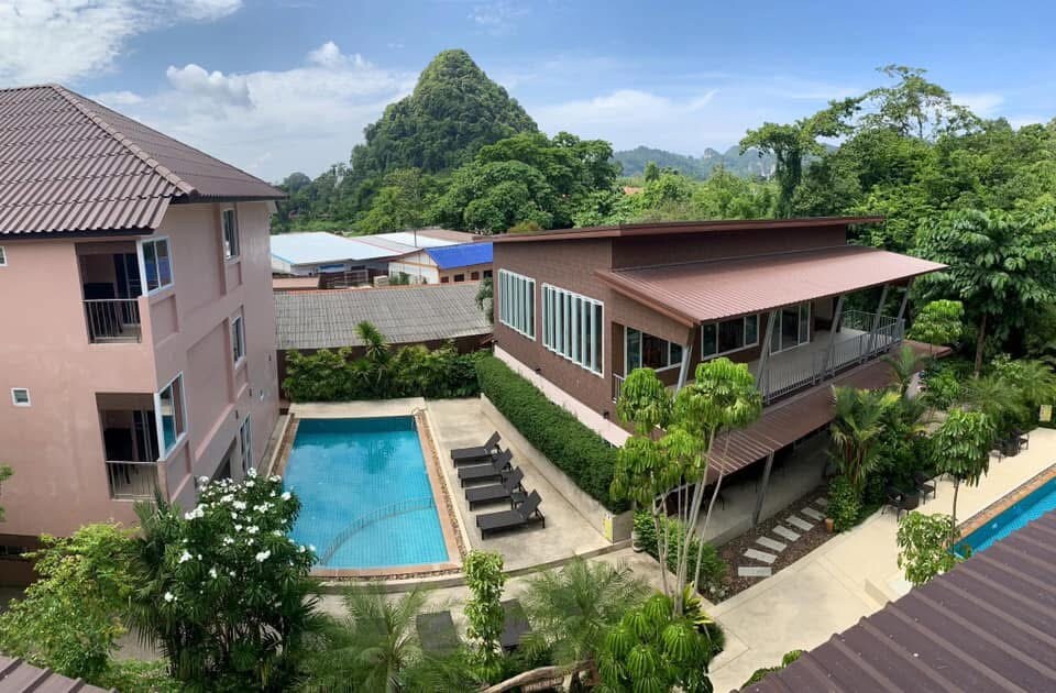Familiäres Apartmenthaus. Ruhige Lage. Inmitten der hier typischen Kalkfelsen. Geräumiges, komfortables Apartment und große Terrasse, mit einem tollen Ausblick. Terrasse ist teilweise überdacht und garantiert Sonnen- und Regenschutz. Großer ca. 50 qm großer Pool mit Relax Sitzbank. Sonnenliegen. Entfernung nach Ao Nang Zentrum ca. 10 km. Nächste Beach ca. 3,5 km. Angrenzend ist das Tub Khaek Naturschutzgebiet. SuperCheap nebenan, gut zum Einkaufen.
