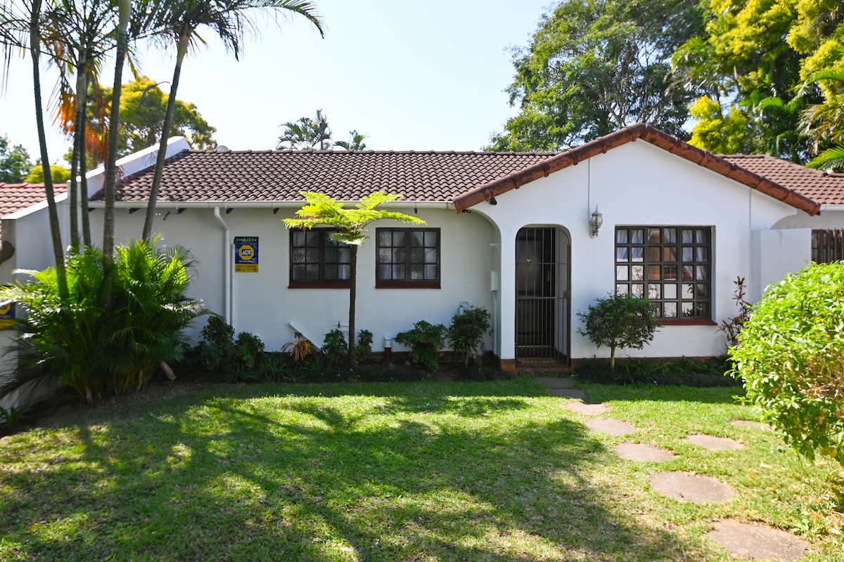 A beautiful, sunny space. Fully kitted with all you need to be a home away from home. Air-con, fast Wifi, TV, well equipped kitchen and a dedicated workspace if needed. Situated in the central suburb of Westville, close enough to shops and popular attractions yet positioned in a peaceful garden full of life for you to enjoy. Secure, onsite parking for 1 or 2 cars available. Private courtyard with outside seating area allows for a relaxing environment to suit your holiday or business needs.