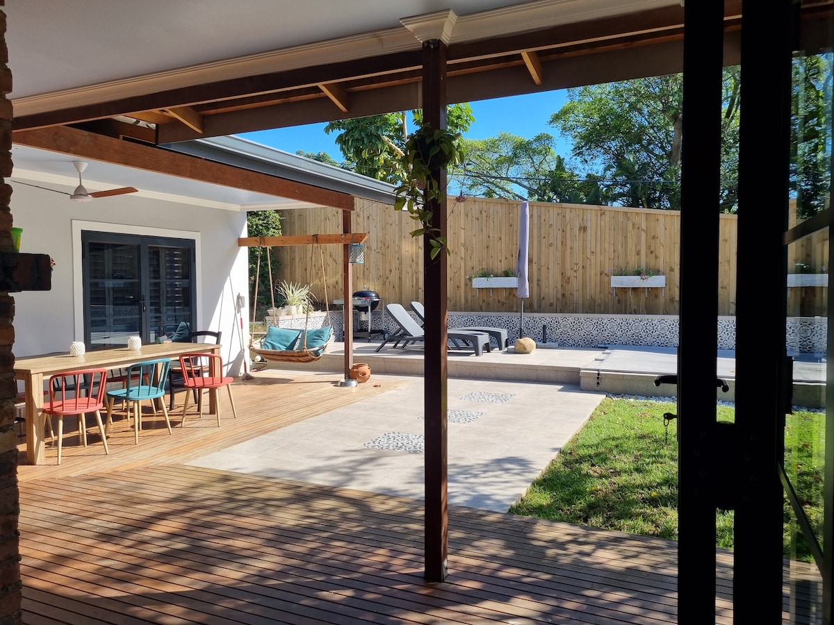 To welcome you to our world our decor is neutral glam, in private and peaceful surroundings in Cowies Hill with a large deck overlooking a nature reserve. Features: air conditioning with heater, large TV with full DSTV bouquet, WiFi uncapped 40 meg line, use of a swimming pool, and workspace. The self catering kitchen has refrigerator, microwave, coffee machine, kettle, toaster, airfryer, induction cooking plate, plus all crockery & cutlery. Bedroom has comfortable double bed and cupboard.