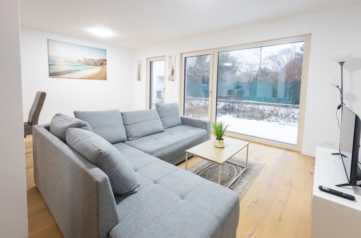 Welcome to "Green Hideaway Vienna," your stylish retreat in Vienna Floridsdorf. This accommodation hosts up to 5 guests and features a modern sauna, outdoor whirlpool, free parking, and high-speed internet. Located just a 20-minute drive from Vienna’s city center, it offers comforts like a spacious bathtub. Perfect for business trips, romantic getaways, or family vacations, this space seamlessly combines tranquility, functionality, and relaxation.