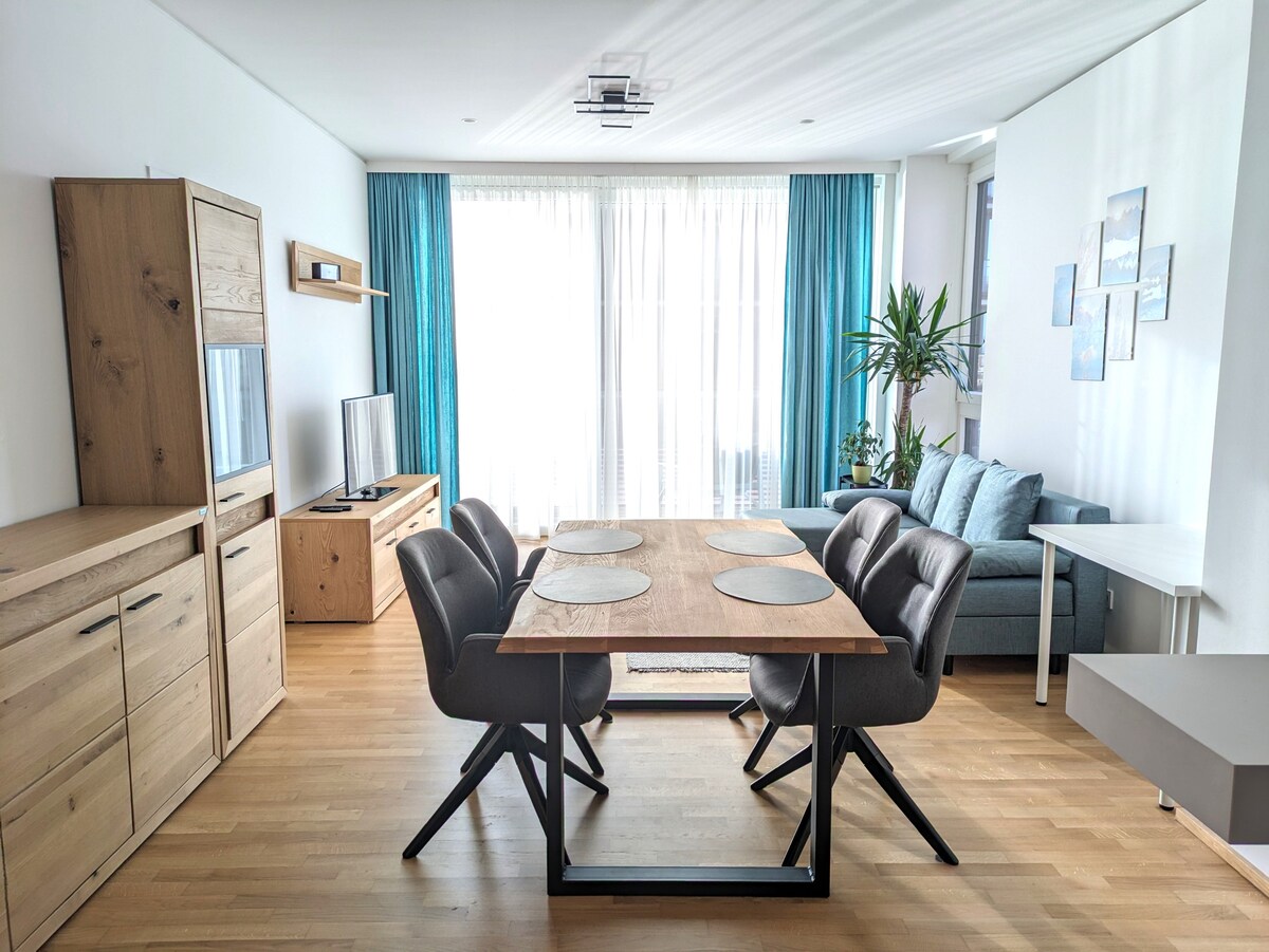Erlebe Luxus mit grandiosem Ausblick! Dieses stilvolle Luxus-Apartment bietet alles: eine voll ausgestattete Küche mit Nespresso-Maschine, gemütlichen Essbereich, großen Smart-TV und schnelles WLAN. Von Mai bis September lockt der beheizte Rooftop-Pool – ideal zum Sonnen und Abkühlen. Dank Top-Lage (U-Bahn ums Eck) bist du in wenigen Minuten in der Wiener Innenstadt. Kurzzeitaufenthalte (unter 31 Nächten) sind bis max. 90 Tage pro Jahr möglich. Für längere Zeiträume bieten wir Monatsmieten an.
