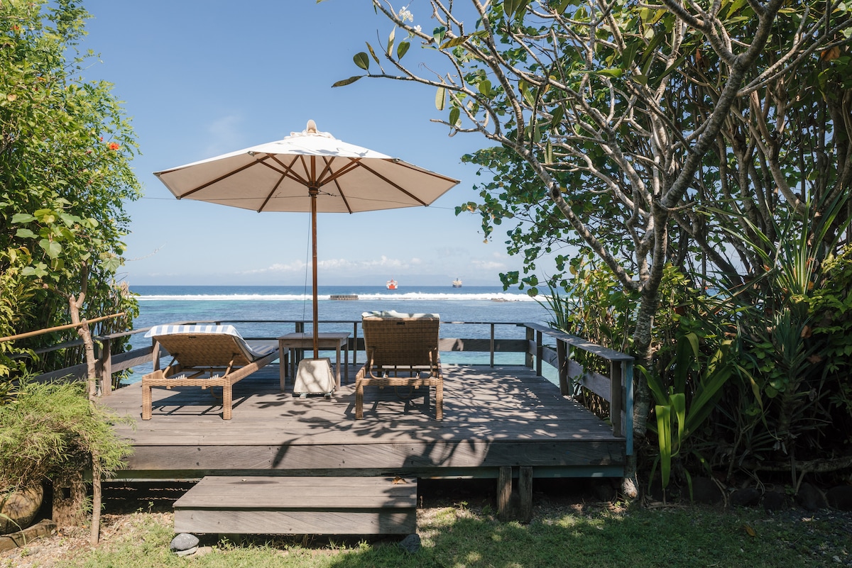 Beautiful sunrise and ocean view private bungalow. You'll love waking-up and falling asleep to the sound of the waves. Relax, meditate or just enjoy the beautiful ocean view from your own private balcony. We are a local family, super friendly and can take care of all your sightseeing and transportation needs and help plan your stay. We serve a delicious breakfast with tea/coffee. Brand new building, very clean, modern yet classic style with air conditioning, and bathtub with hot and cold water.