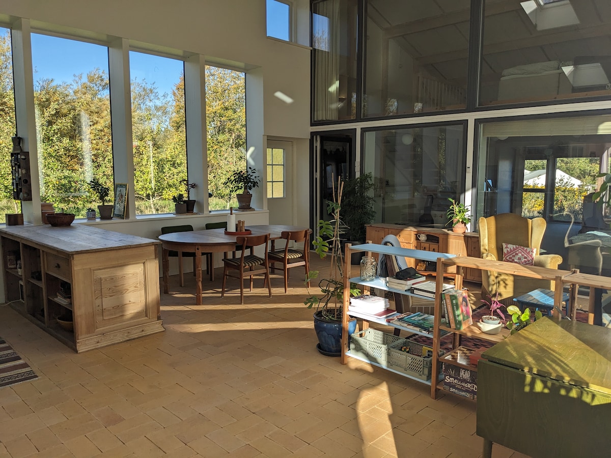 Wake up in a quiet scenic area overlooking Sletterhage Lighthouse and Aarhus Bay. The residence is a cottage next to our house. Appr. 55 sqm with 3 living/bedrooms, a combined hallway, kitchen and sitting room and a bathroom. We are located close to Ebeltoft and Mols Bjerge National Park. You will love my home because of tranquility and peace, cosiness, prospects. The property is good for couples and sole adventurer. Ideal for hikes in Helgenæs' beautiful scenery and glacial landscape.