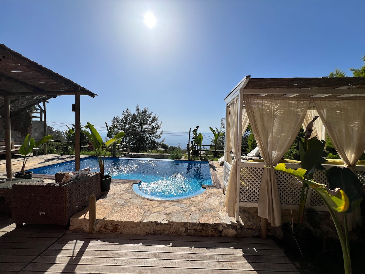波西米亚别墅,带私人海景泳池