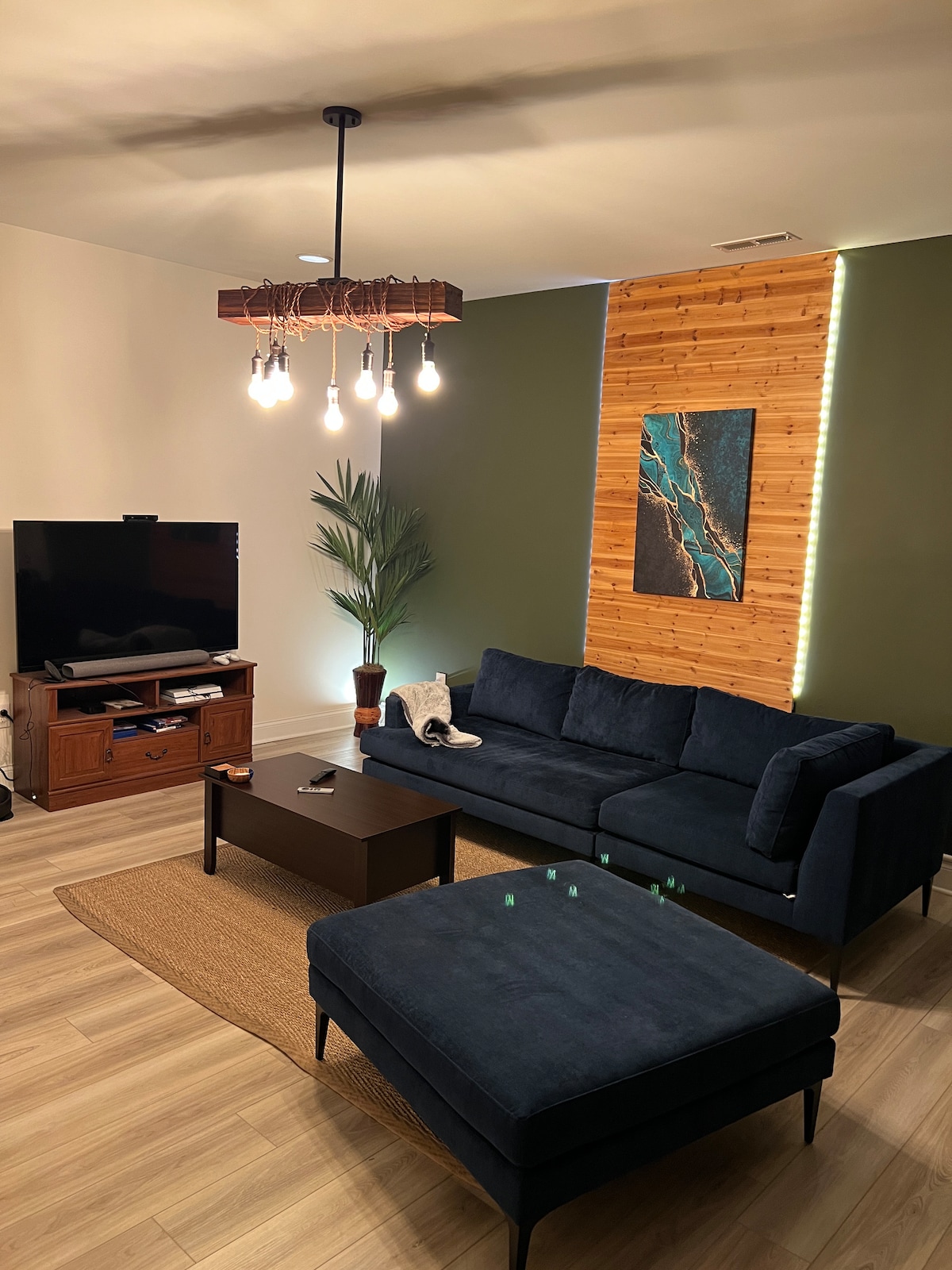 Stylish, modern new-build in central Raleigh — perfect for families, work, and play. Enjoy midcentury decor, a private rooftop patio, 3 bedrooms, 2.5 baths, and two dedicated workspaces. Stay connected with high-speed Wi-Fi, Apple TV, and refreshed with our fully stocked kitchen and bathrooms. Family- and pet-friendly with baby gear included and a $50 pet fee for up to two dogs. Attached garage and free parking. Just minutes from Downtown Raleigh, nightlife, museums, and top restaurants.