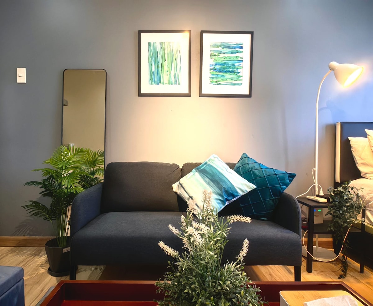 Welcome to our airy contemporary and Mediterranean-inspired Tahanan, a 25 sqm studio unit in Mandaluyong, just a short walk from Rockwell and Powerplant Mall! We’ve designed our space to provide a comfortable stay while capturing stunning sunset views, as well as views of Mandaluyong and Makati from our balcony. Whether you’re visiting for work, leisure, or a mix of both, our well-equipped Airbnb is the perfect base for exploring the vibrant cities of Mandaluyong and Makati.