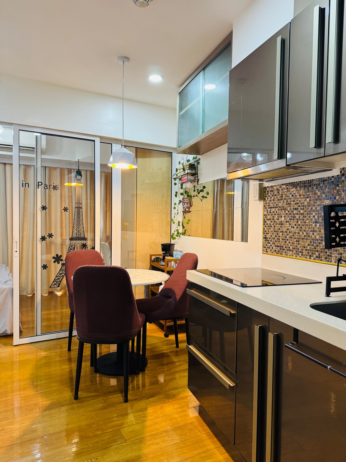Welcome to our neo-classical-inspired unit at Knightsbridge Residences, located in the heart of Makati. Situated on the 23rd floor, enjoy stunning city views, especially at night. The building offers hotel-like amenities such as a pool, gym, game room, and more. Walking distance to Poblacion’s vibrant nightlife, this cozy unit features a 55” TV, a full-sized bed, 200 Mbps WiFi, a hot/cold shower, and a kitchen where cooking is allowed. Experience comfort, convenience, and style all in one place!