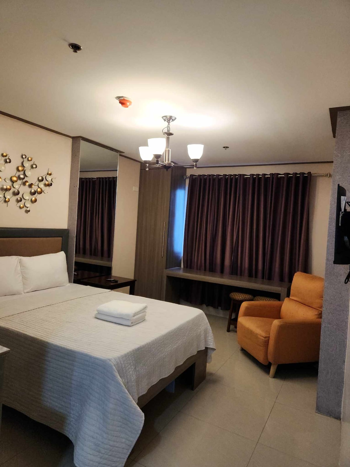 Spacious 27.23 sq.m. (~293.10 square feet) cozy and relaxing private hotel suite at 14F of LANCASTER HOTEL MANILA near MRT Shaw, Shangrila Mall, Greenfield District, Megamall, Star Mall EDSA Shaw, and WCC. See More... 🟩Cozy Hotel Interior Ambiance 🟩Queen Size Bed + Orthopedic Mattress 🟩Hot Bath Tub 🟩FREE Pool Access at Rooftop 🟩500 MBPs Ultra-Fast Wifi Speed 🟩43" UHD 4K Smart TV + Soundbar for Cinematic Sound 🟩Netflix + HBO Max + Disney Plus + Prime Video + Spotify 🟩Bluetooth Speaker