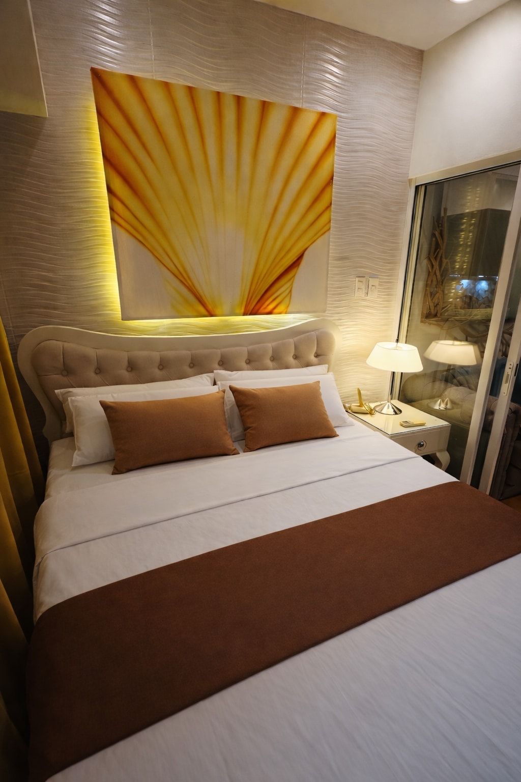 This newly renovated studio is at the 42nd floor of the stylish Milano Residence (beside Gramercy and Century Mall). It has unobstructed panoramic sunset view which photos cant do justice. The bed is an ortho bed which is great for your lower back…while the sofa is a sofa bed which fits 2 children. The soothing decor is well appointed and narrates the landscape of the Philippines. The unit was featured in an interior design magazine in the past being well edited despite being compact.