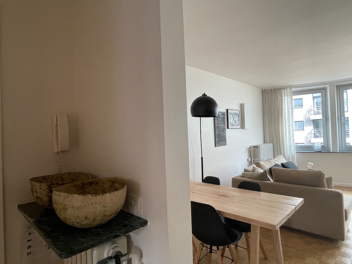 Studio b-line Blankenberge is a renovated studio (35m2) with beautiful sea view on the Zeedijk (4th floor Sealing1). Terrace for apero or morning coffee. 2-person sofa bed + bedside cabinet with 2 single beds. Sheets and towels for rent, on request. Bathroom with washbasin, shower and toilet. 15km from Bruges, 1.3km from the train station and 1.3km Casino, restaurants, beach bars, sealife, serpentarium, in the Leopold Park: mini golf, children's playground, table golf, kids go-carts. Bike rental