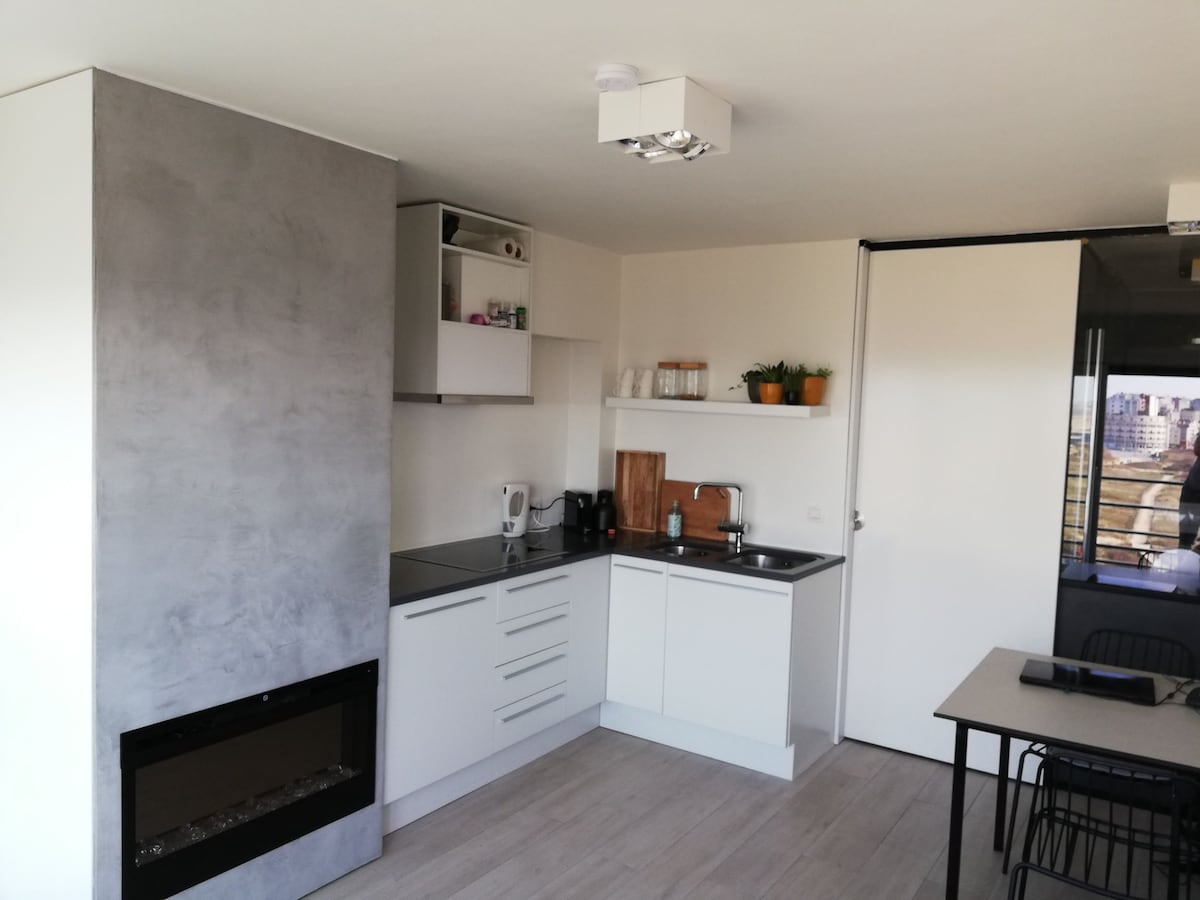 Studio b-line Blankenberge is a renovated studio (35m2) with beautiful sea view on the Zeedijk (4th floor Sealing1). Terrace for apero or morning coffee. 2-person sofa bed + bedside cabinet with 2 single beds. Sheets and towels for rent, on request. Bathroom with washbasin, shower and toilet. 15km from Bruges, 1.3km from the train station and 1.3km Casino, restaurants, beach bars, sealife, serpentarium, in the Leopold Park: mini golf, children's playground, table golf, kids go-carts. Bike rental