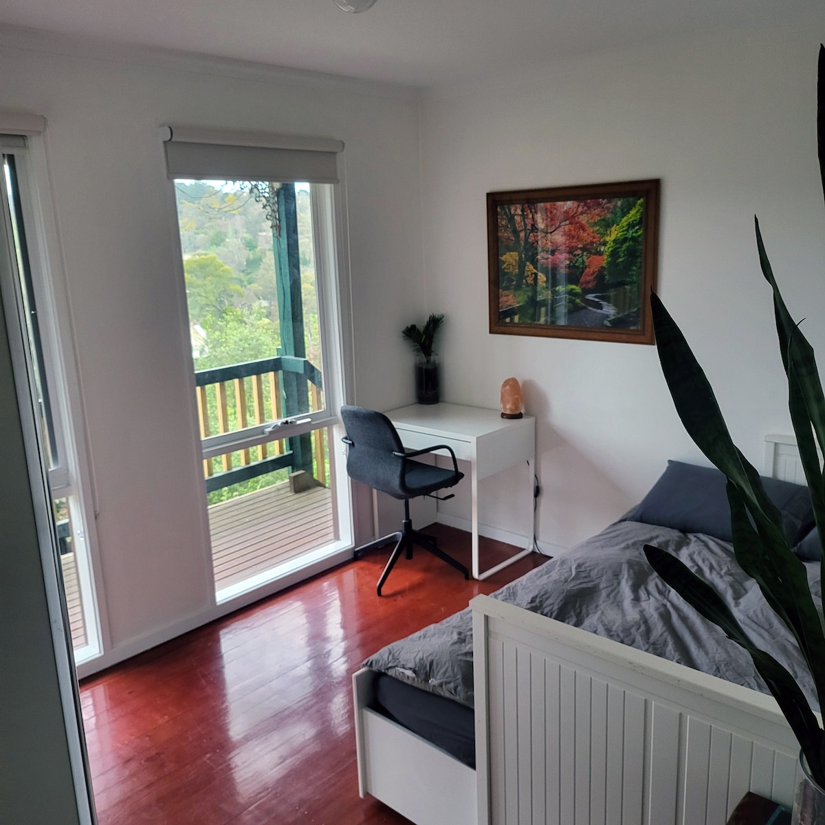 Get away from the city and relax amoungst the hills of Dandenong Ranges. There's many gardens to visit only a short drive from the accommodation (e.g. Alfred Nicoslon Garden, The Rhododendron Gardens, etc). There's also lots of restaurants and cafes nearby (e.g. Belgrave, Sassafras, Olinda, etc). There's plenty of activies to do around the area (e.g. nature walks, Puffin Billy, etc). The room itself is ideal for one person.