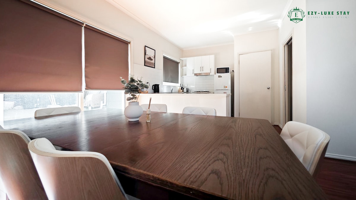 Light-filled 3-bedroom 2 bathroom townhouse with mountain views, private backyard, and secure garage parking. Features a modern kitchen, two living areas, work desk, ducted heating/cooling, fast Wi-Fi, Smart TV, and full laundry. Only 30km from Melbourne CBD, walking distance to Boronia Station, shops, cafés, and supermarkets. A perfect base to explore Melbourne city, the Dandenong Ranges, Yarra Valley wineries, and Mornington Peninsula beaches.