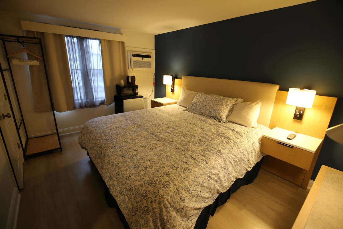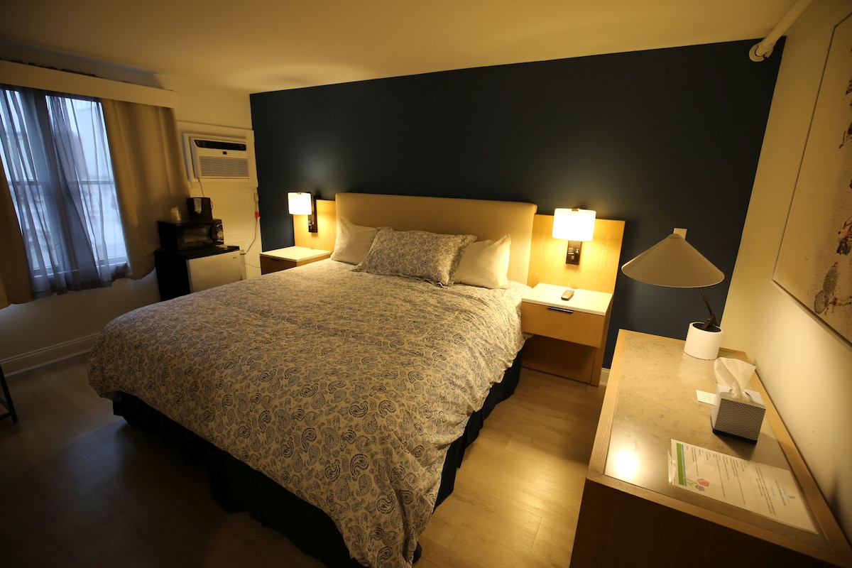 Formerly known as Room 24. Located on the 1st floor of the Vestry building, originally built in 1904 as a church, this King size bedroom (with available twin) offers a place for both you and your pet to stay and relax. With a private bathroom, a partial ocean view, and access to outdoor deck seating and yard this spacious room is a great place to stay.