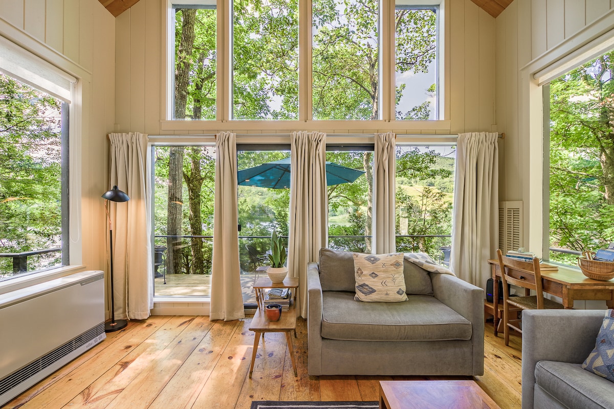 This cottage is away from the water about two minutes of a walk -Your family will be close to everything when you stay at this totally renovated 1940 ‘s waterfront cottage Yes I have hot water!!!!! And lots of it. Shower is powerfull! About. One minute walk to your lake cabana and float down a forest path and just minutes away from Camden’s ocean view ski mountain!,the snow bowl! With 1000’ vertical alpine ski trails and mountain bike trails Two spacious bedrooms, full kitchen, covered porch