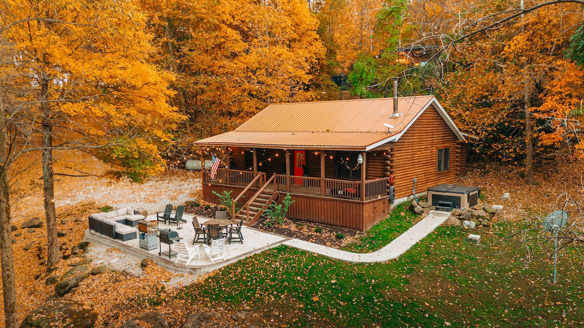 Relax with the whole family at this peaceful cabin that is your home away from home. Nestled in a beautiful residential wooded cul-de-sac, this 1970’s log cabin home will provide you some cozy comfort perfect for a weekend getaway. Disconnect from the hustle & bustle of life as you enjoy a cup on coffee on the front porch swing, surrounded by the beauty of nature. Wrap up your evening making s’mores fireside on the patio while reconnecting with nature, rediscovering the simple joys of life!