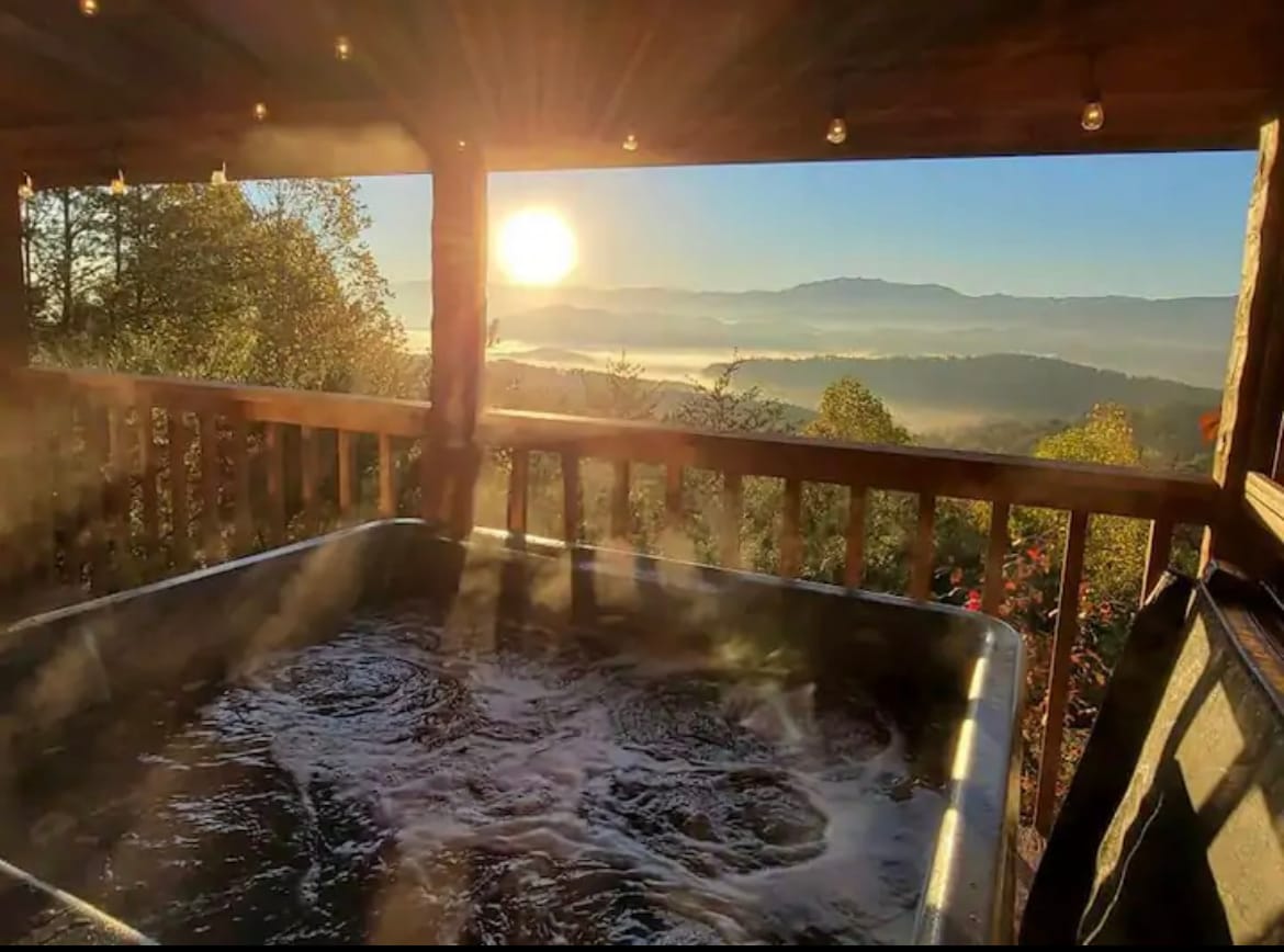 Stunning Mountain Views - Modern Comforts! This two-level cabin offers breathtaking mountain vistas. Whether you’re relaxing on the log rockers on the wrap-around decks, soaking in the jacuzzi whirlpool tub upstairs, or unwinding in the bubbling hot tub on the back deck, the scenery will leave you in awe. Conveniently located 25 minutes from the Great Smokey Mountains. •Two-level cabin •Mountain vistas •Pool table •Hot tub •Jacuzzi •Large smart TV •Patio Swing