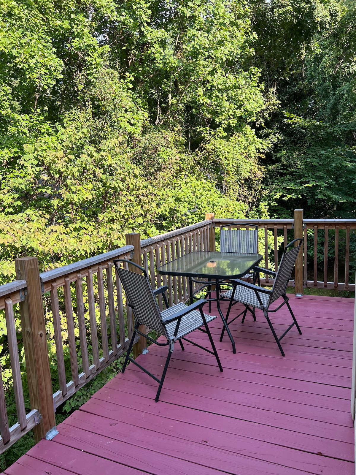 Autumn Home (B), ✅ large soaking tub ✅ fire-pit (shared backyard space) ✅ memory foam mattress toppers with quality linens ✅ full size refrigerator, washer and dryer, extra large kitchen ✅ sound bar with Bluetooth, Netflix & Disney Plus ✅ living room pull out couch ✅ air purification system ✅ full private deck ✅ wheelchair ramp (house is not fully ADA accessible) ✅ extra large closet ✅ style with lots of comforts and convenience in a quiet neighborhood