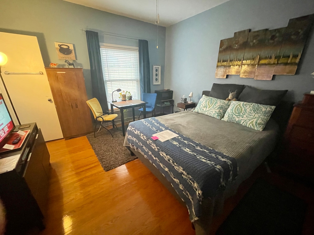 This apartment is build in a basement. It has its own door, private bathroom, living room , big L couch, TV-tray set, TV, Roku with Netflix, cabinet with fridge, microwave, coffee maker, electric kettle, and a sink. The bedroom has one King bed, a queen size inflatable bed that can be set-up for extra guests, a sofa, ceiling fan, closet, night stands, portable radian heather, portable fan, and a dresser. Parking for two or more vehicles. Only two adults live in the main floor of the house.