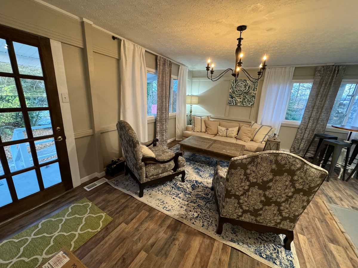 In the middle of beautiful trees, this peaceful studio guesthouse provides a refreshing setting very close to downtown. The private quarters feature fresh white linens, fully-stocked kitchen, separate entrance, comfy bed, sun-filled rooms & a lovely, outdoor seating area. *4 min to Kroger grocery & restaurants *11 min to Tennova North Hospital, perfect for travel nurses! *12 min to downtown *13 min to UT's Neyland Stadium & Thompson Boling Arena *50 min to the Smoky Mountains