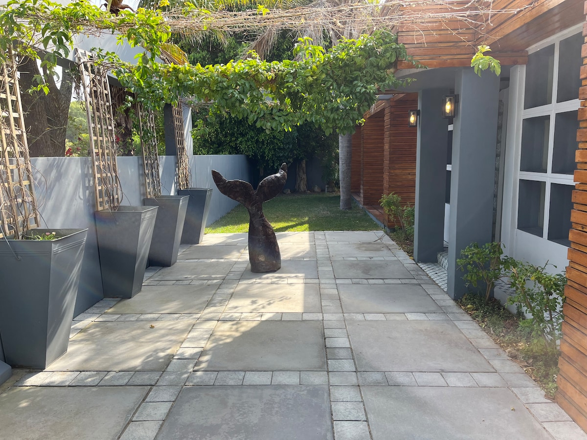 Architectural flair combined with laid back beach house vibes. This is what this newly, purpose built home offers holiday makers. Buffelsbay is a Blue Flag gem on the garden route. Safe swimming, surfing and body boarding, as well as kayak and SUP, sundowners on the rocks or walks along the vast sandy beach. This small coastal town can offer it all. Loadshedding: We have an invertor, so you will have some plugs (wifi and TV) and all lights operational during loadshedding.