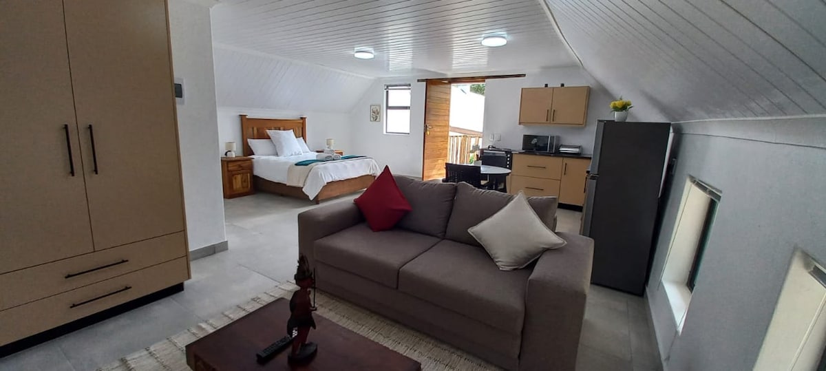 We are on the lagoon front in Belvidere Estate's quiet and safe surroundings. The apartment is self catering with lounge, dining area,small kitchen and bedroom with en suite bathroom with shower .The local pub, The Bell is just a short stroll away as well as popular Oakleaf bistro serving delicious healthy meals , cakes and coffee. Step out the gate and take a walk around the lagoon to the jetty and Belvidere village or just relax on your private patio and enjoy the view.