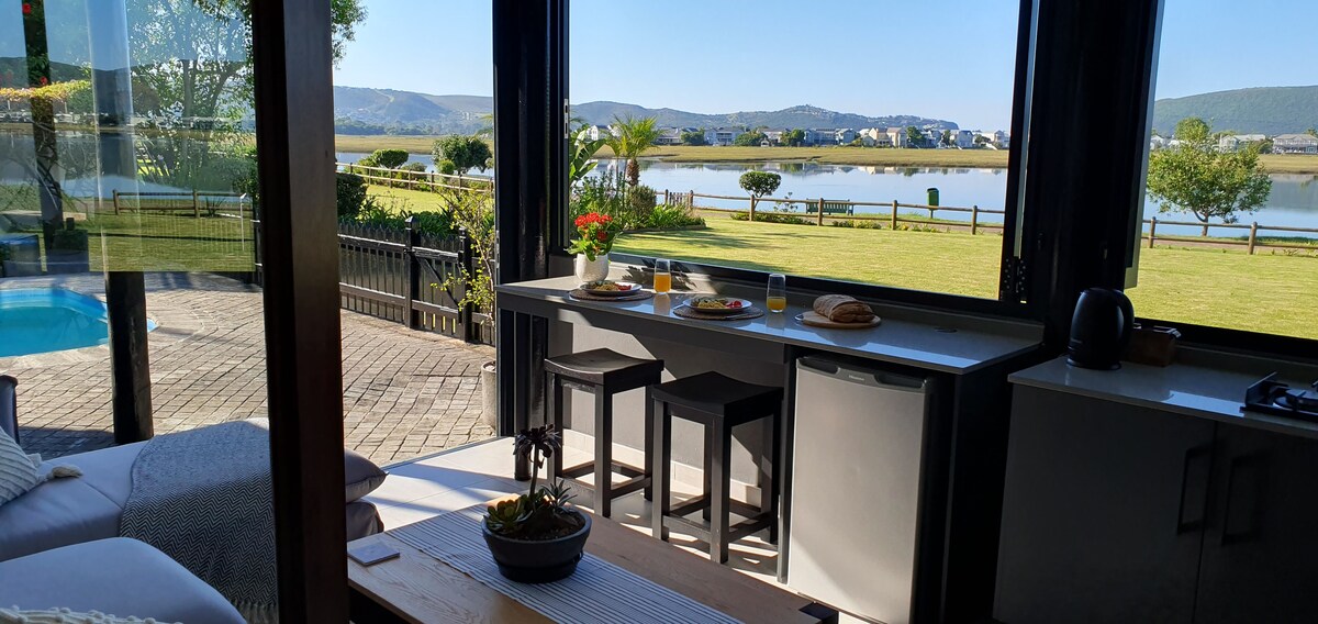 Unwind in style at our charming apartment, perfectly situated on the edge of the picturesque Knysna lagoon on the outskirts of Thesen Harbour Town. Enjoy the tranquil atmosphere and stunning views, while still being close enough to immerse yourself in the vibrant village atmosphere. And, with double-glazed windows, you can relax in peace, shielded from the outside weather and bustle, and indulge in a serene retreat that's all your own.