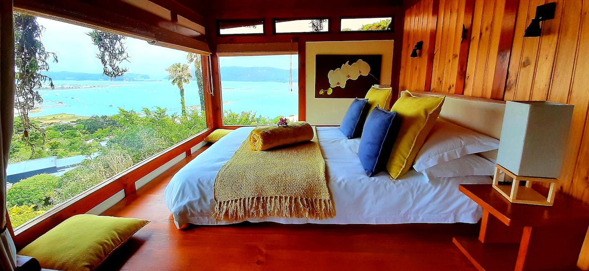 Located in the heart of Paradise, perched high above the village with breathtaking handcrafted views of the lagoon & famous Knysna Heads - a blissful base for creative solo breaks or lovebirds wanting to go off the radar into their own little world. Whether it be glassy summer days or dramatic winter storms, the sweeping lagoon views will take your breath away. The private decks are perfect for champagne celebrations or nights wrapped in blankets whilst enjoying a steaming mug of hot chocolate.
