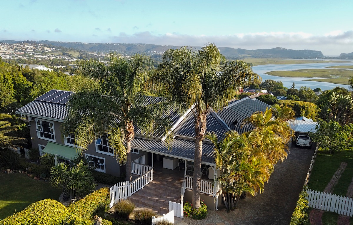 Sunny lifestyle home with swimming pool, lots of outdoor dining spaces and comfortable lounging spaces. Every room in this home has doors leading onto the garden. Peaceful neighbourhood overlooking the Knysna Estuary, bordering on Pledge Nature Reserve but a minute away from town, with easy access to all Experiences Knysna has to offer. Huge garden and gorgeous views. High end beds for comfortable resting and all bedrooms en suite. Fireplace for chilly evenings and courtyard heater.