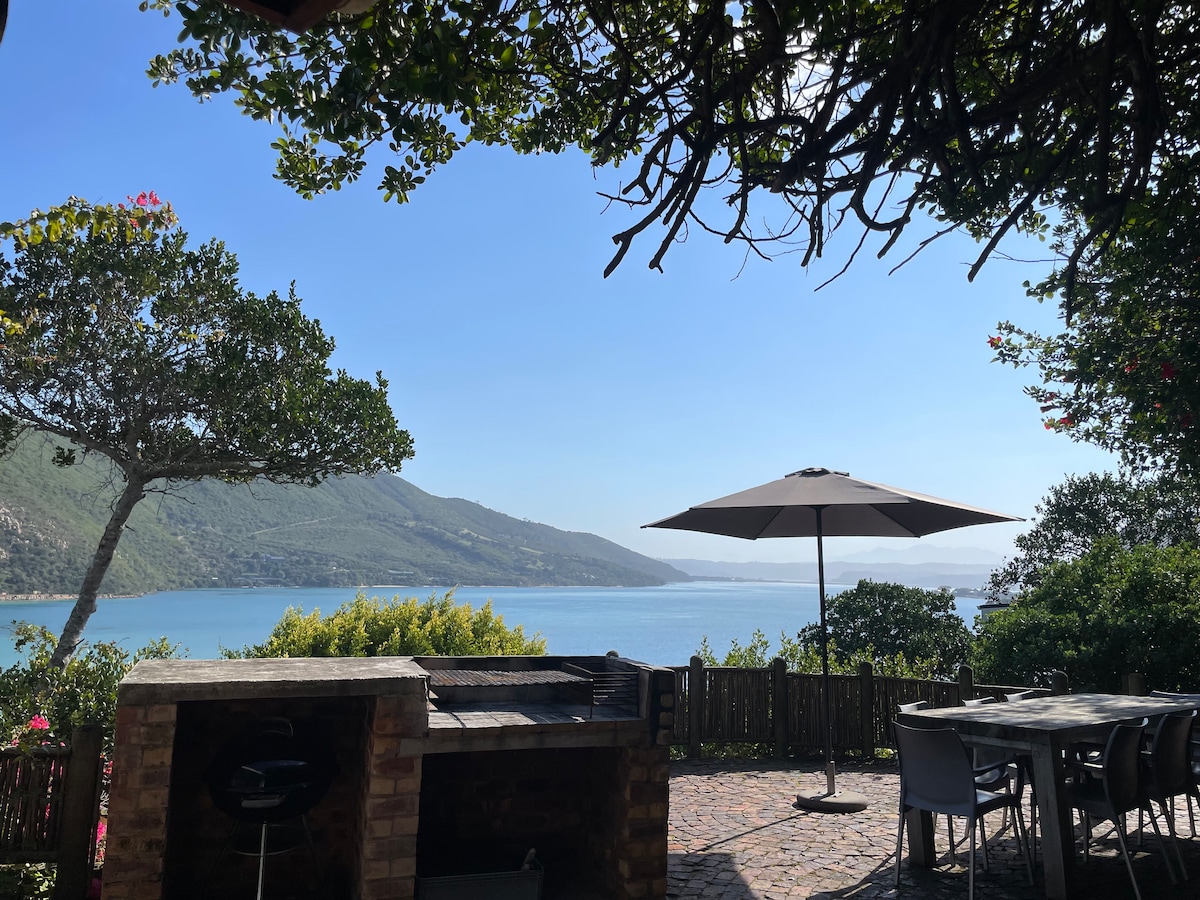 180 degree views (Solar for power security) of the stunning Knysna lagoon in in quiet neighbourhood. Top finishes in a new house! Lovely garden and pool. Sunny deck to enjoy the views and a Fireplace to add atmosphere and warmth on cooler evenings. So close to town but quiet and private. Braai/Barbecue for outdoor cooking and dining on the many beautiful evenings. The reviews from all our guests say it all and 75% of our guests are discerning international travellers.