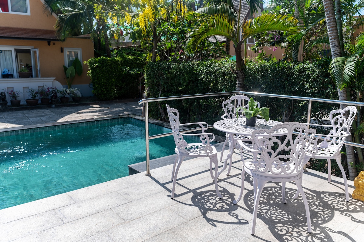 -Exclusive Strand-Pool-Villa Thai Styl -5 Zimmern /bad mit Pool direkt am Strand. -Wifi in allen Räumen -Platz für bis zu 10 Personen -Küche voll ausgerüstet mit Nespresso Kaffeemaschine, Backofen, Mikrowell und Geschirrspühler -Garten stehen die Liegestühle bereit. -Alle Zimmer (mit Safe) der Villa haben einen privaten Eingang -2 Master Bedrooms im 1. Stock mit Aussenbad. STROM & WASSER WIRD NACH ZÄHLER ABGRECHNET Stromkosten pro KHW 6 Baht Wasserkosten pro m3 85 Baht