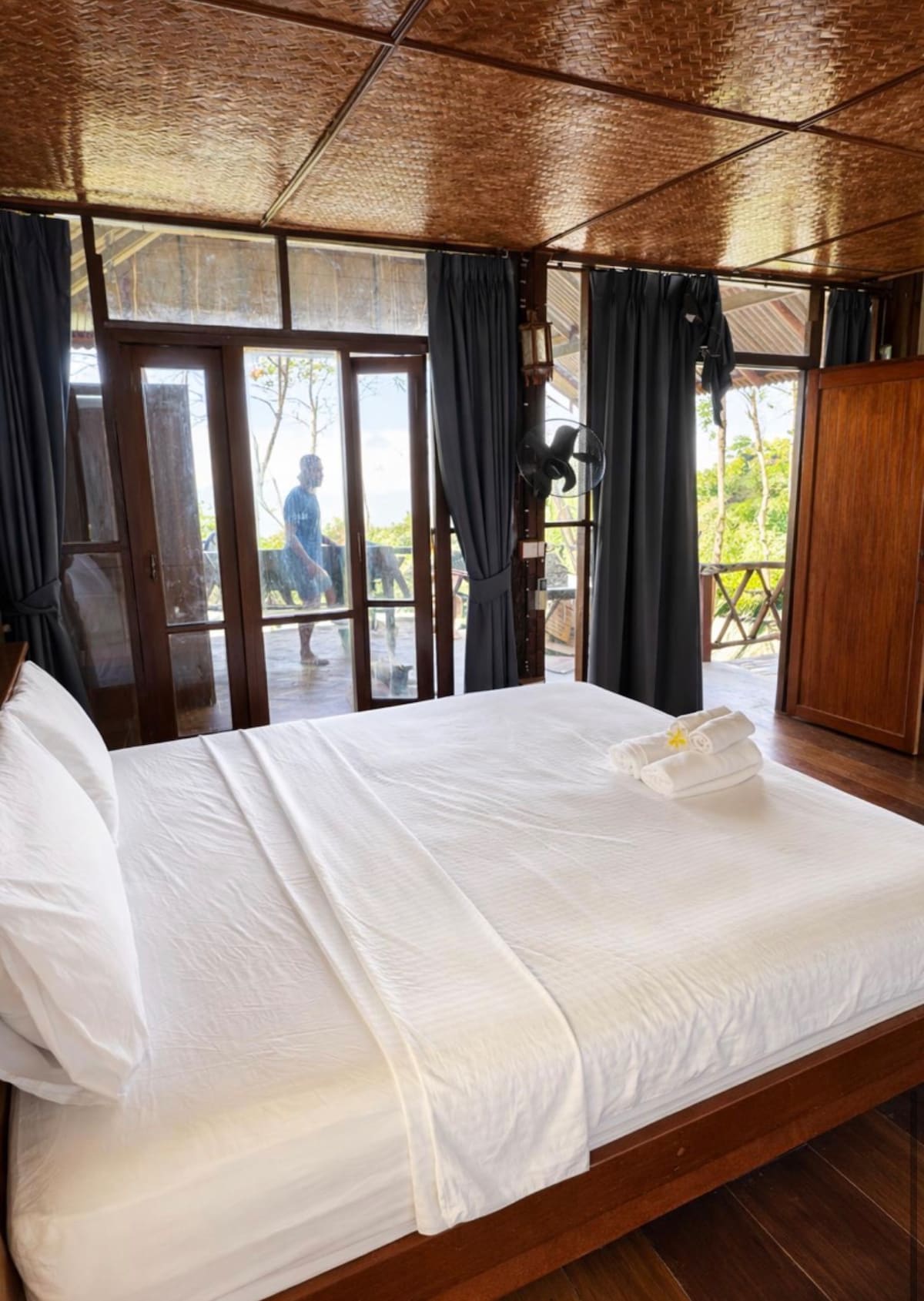 The room is next to the sea. Able to park in front of the room There is a balcony in front of the room overlooking the sea and mountains of Koh Chang. It is close to the resort's Coco Beach front and a wooden bridge that extends into the sea.