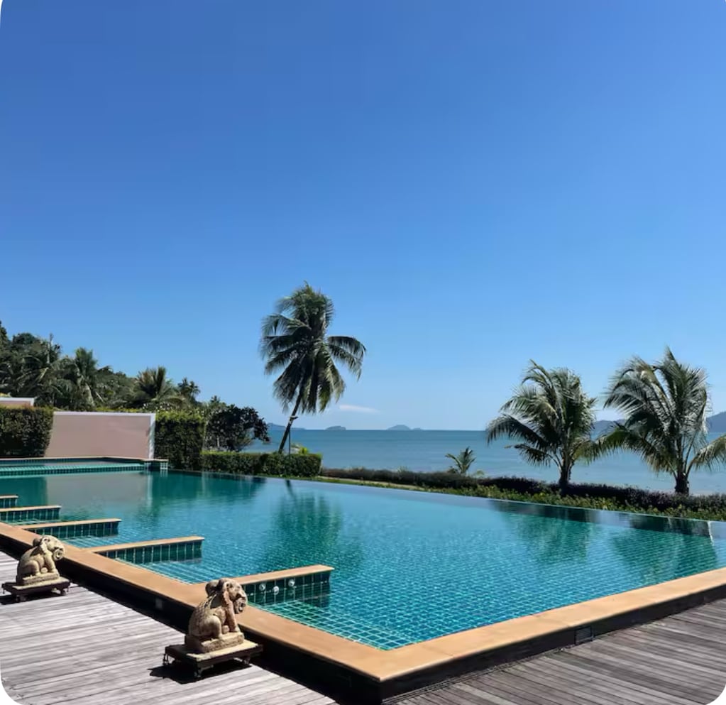 Das bestens ausgestattete Penthouse mit 130m2 Wohnfläche und einer grossen Terasse mit 25m2 bietet eine traumhafte Aussicht über die Bucht von Bang Bao, das Pier sowie die vorgelagerten Inseln des Archipels. Zur Residence gehört ein großzügiger Infinity-Swimmingpool in einem gepflegten tropischen Garten und eigenem Anlegesteg.