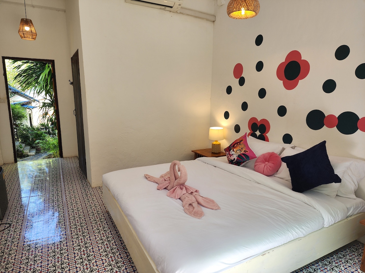 Nestled in the heart of lush greenery, our cozy Jungle Bungalow offers a serene escape with a charming garden view. Spanning approximately 15 square meters, this bungalow is the perfect retreat for nature lovers.