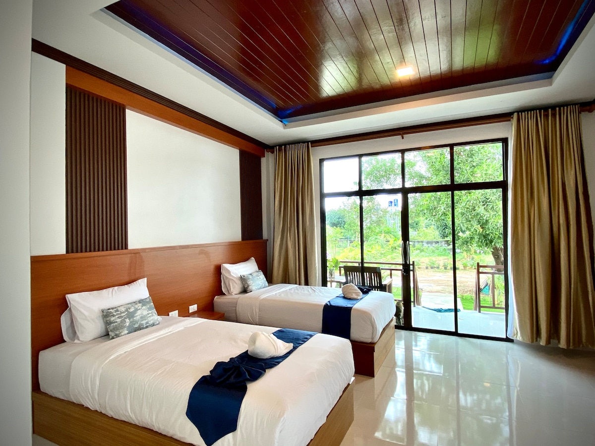 Lanta Sky villa is in a quiet zone WITH private pool and 5 minuts walk to the Klong Khong beach.Close to Restaurant and shops. Both bedrooms have an ensuite and large terrace along the front. Nice garden daybed, sunbed and pool at front yard and private backyard for kids to run around. Suitable for family or group of friends