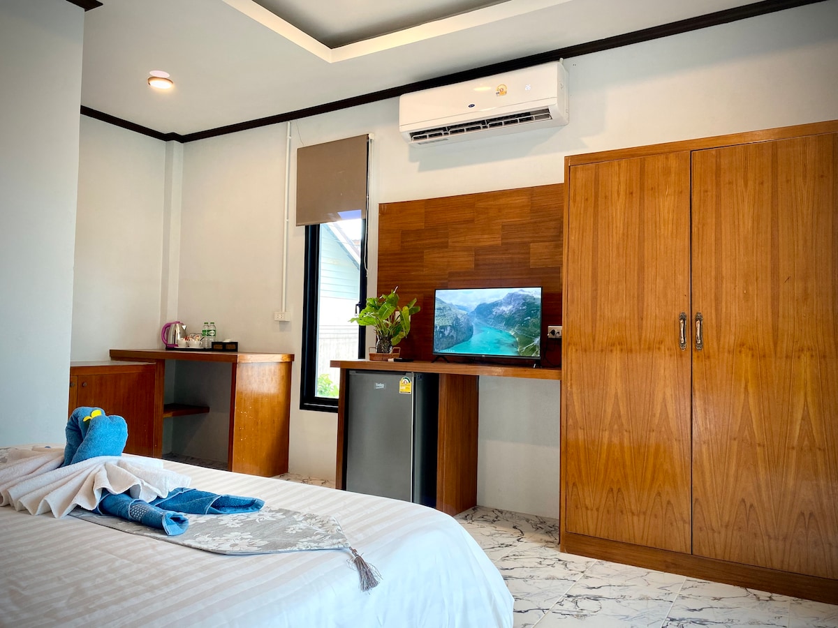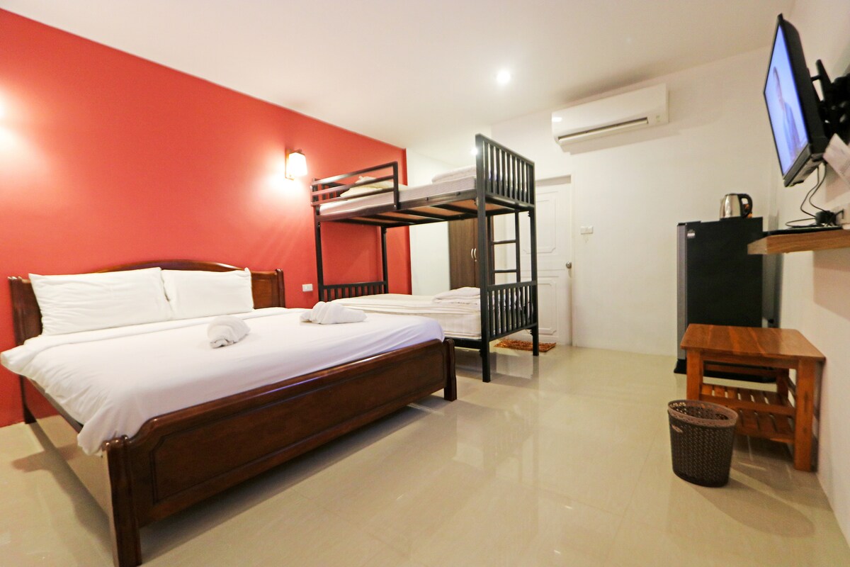 Relax in this spacious and comfortable triple room, just a few steps from a pristine beach. Ideal for small families or friends, this cozy retreat features air conditioning, comfy beds, and a private balcony to enjoy the island breeze. Wake up to the sound of the waves, explore charming beachside restaurants, and experience the tranquil beauty of Koh Lanta. Whether you’re here to unwind or explore, this beachside hideaway is the perfect escape.
