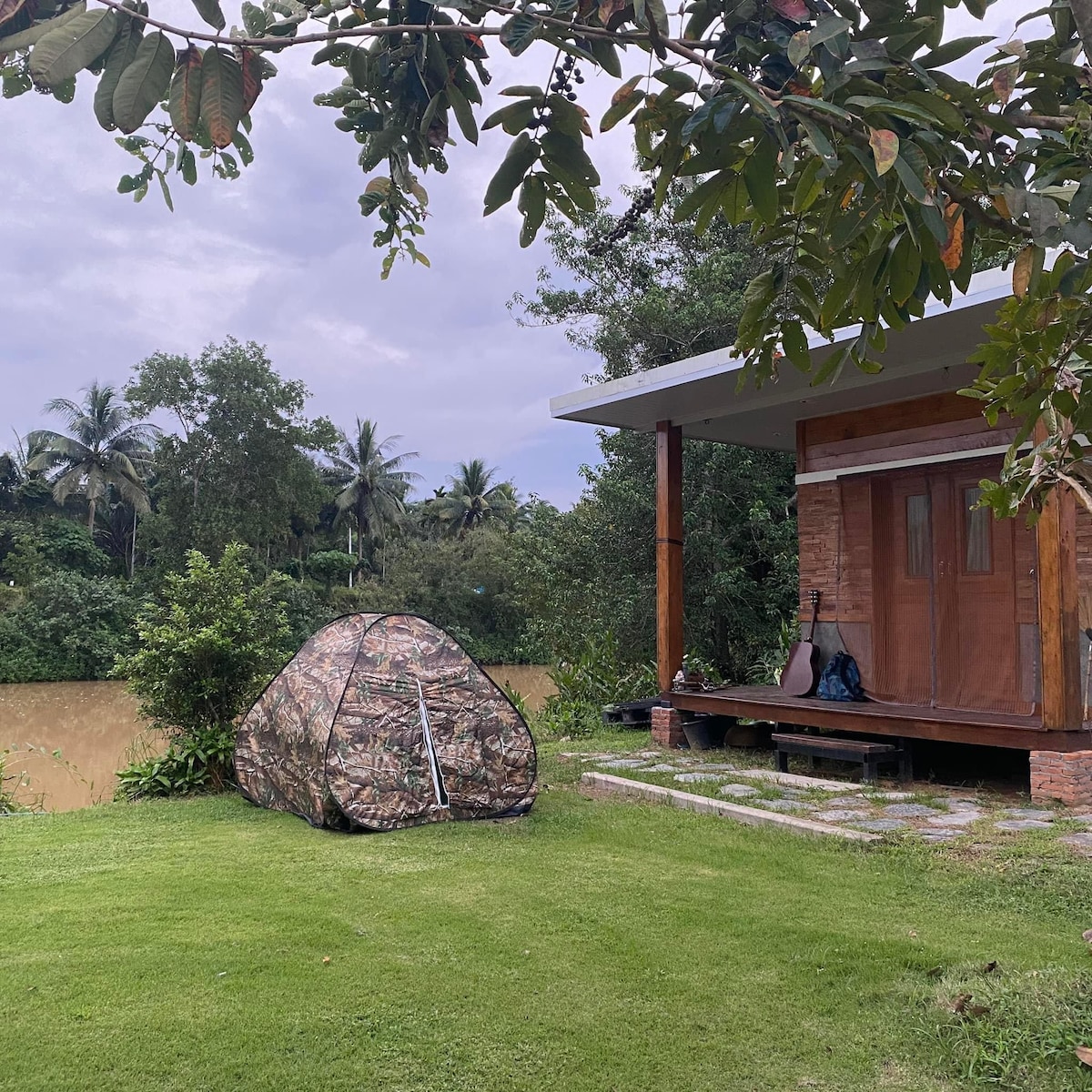 A cozy small house with 2 bedrooms, perfect for a peaceful escape. Nestled in a quiet area by the Pa Nang Tak river, it offers a relaxing atmosphere with beautiful views. Ideal for couples or small families seeking nature and serenity. Enjoy calm mornings and restful nights in this riverside retreat.