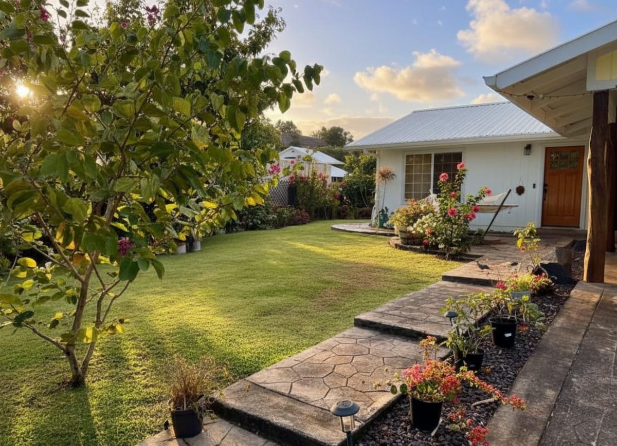 Aloha. Our Haleʻiwa home has three bedrooms (1 Cal king, 2 queens), AC throughout, and a kitchen for meals together. Relax in the living areas, rinse off after the beach in the outdoor shower, or enjoy quiet evenings outside. Steps from shops and town, our home is cared for and comfortable. Whether you’re visiting home, reuniting with family, or marking a special moment, we welcome you to feel at home here in Haleʻiwa. Listing complies with all local transient accommodation rules.