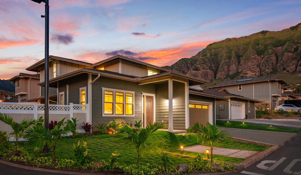 Enjoy this beautiful, private, brand new studio nestled in the mountains of Makaha Valley. This is located in a gated community with 24 hour security. Minutes from year round surfing and golfing. This is a LEGAL vacation rental. Private yard on a perimeter lot with unobstructed ocean and mountain views and just a few minutes drive to many clean, sand bottom beaches. Any combination of 4 guests is okay as long as there is a max of 2 adults.