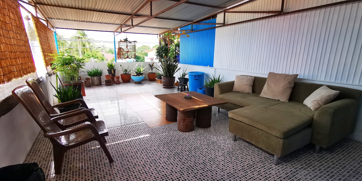 Chambre avec terrasse au 2ème et dernier étage d'une maison de ville, au centre de Thong Sala, à 700m du quai principal. Vous serez les seuls guest de la maison. La chambre est simple, tout confort, lit king size, TV, mini fridge et climatisation. Accès direct à une grande terrasse privative, avec sofa, sans vis à vis, un peu bruyant la journée, mais pleine de charme. Parfait pour chill où faire son yoga. No party zone.. Vous êtes les bienvenus, Mi casa es su casa :)
