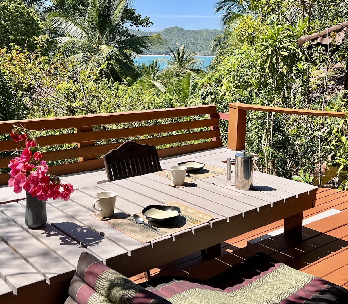 The HATCH, Hin Kong Beach, West Coast, Koh Phangan. Welcome to our romantic & charming beach home, filled with modern comforts for a perfect getaway. Situated directly on the ocean in the heart of Hin Kong Bay, you’ll enjoy breathtaking sea views and the feel of sand between your toes right outside your door. With sunsets and the ocean just steps away, The Hatch offers a peaceful retreat in one of the island’s most loved spots, combining serenity with easy access to everything you need.
