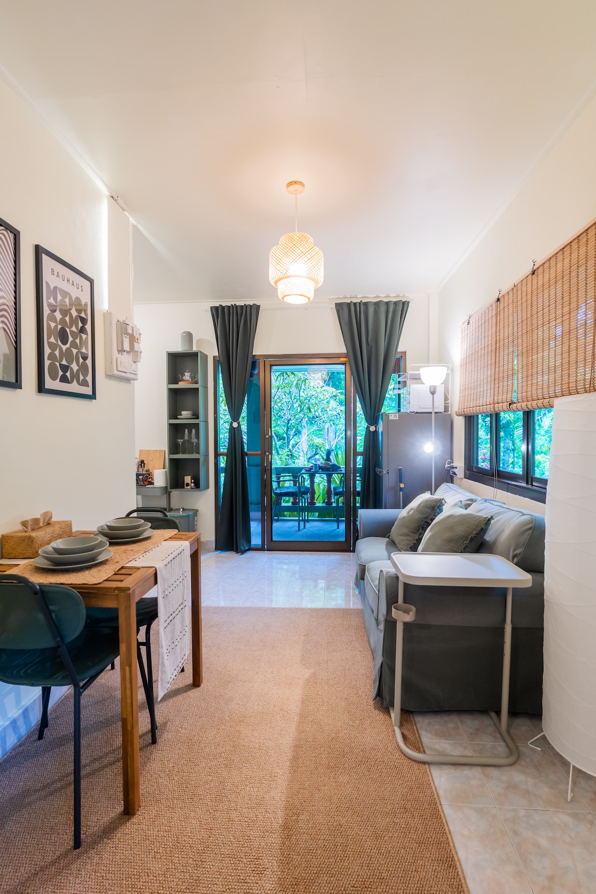 45 m²🏡 with sofa bed, hot water, cozy balcony, AC and wi-fi. In the❤️of Koh Phangan, only 2 mins drive from the beach, 5 mins from the center. ⭐Fully stocked and equipped kitchen⭐ Very safe area that you can leave the door open anytime. "Excellent place!!! Has everything you need (including a stocked kitchen with basic equipment). Really clean, well-designed space. AC, hot shower, hammock! Overall, I loved my stay here and hope to return. Oh, and book a Brillo massage...fantastic!"
