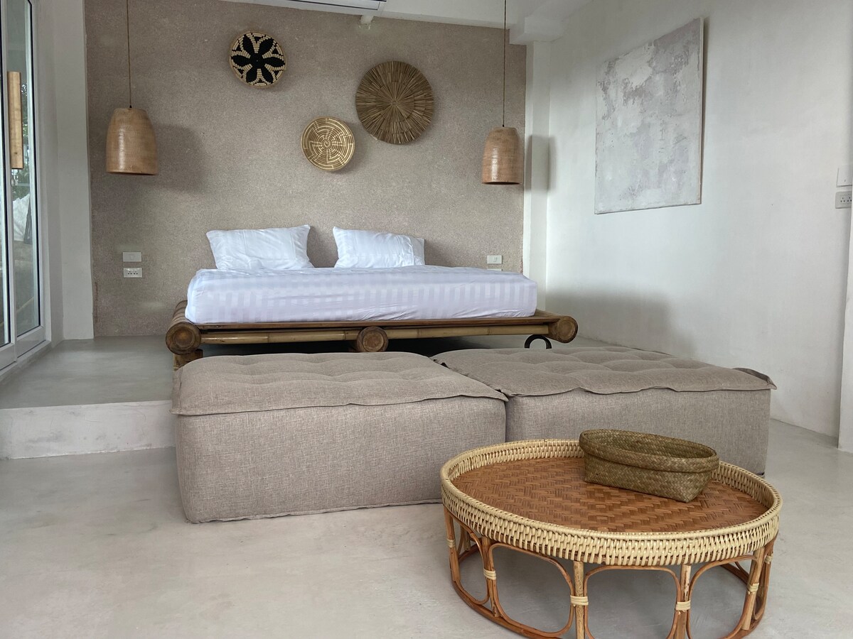 Kick back and relax in this calm, stylish space. Located steps from the beautiful shores of Chaloklum Bay, Koh Phangan, an area known for its rich local culture, fresh-off-the-boat seafood, crystal clear seawater and white sandy beach. This 1 bedroom top floor apartment comes with a private deck overlooking the blue seascape, a fully equipped kitchen, king bed, cozy living room, outdoor shower, indoor/outdoor dining and high-speed wifi. This newly renovated gem is what you've been looking for.