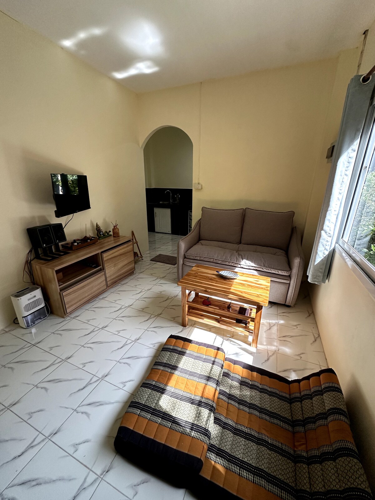 A hidden sanctuary deep in the forest. This unique home offers total privacy, fresh air, a peaceful atmosphere and the sound of nature. A spacious terrace catches the breeze, the large bedroom with AC invites deep rest, and the open-air kitchen blends simplicity with nature. In the ground floor, a dedicated space for yoga or exercise enhances the experience. Perfect for couple or solo traveler seeking tranquility and a true escape. Possibility to welcome 2 more persons in the sofa bed.