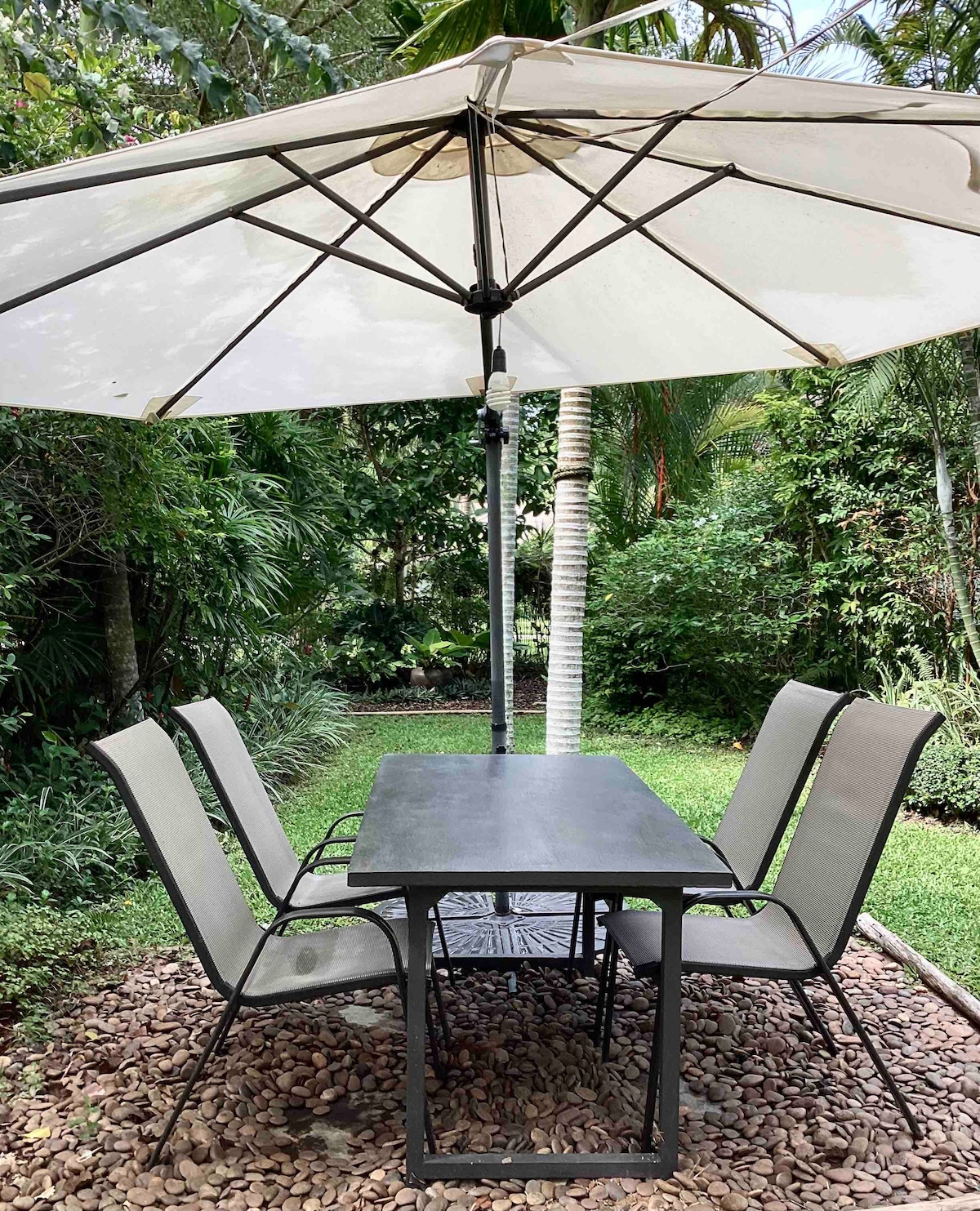 Beautiful light airconditioned large bedroom with shower/bathroom ensuite, with large sliding doors overlooking a verdant garden with your own private patio table and chairs, adjacent to a stunning Villa, with hospitable South african hosts, The accommodation is close to town and the many beaches. Very quite and very private