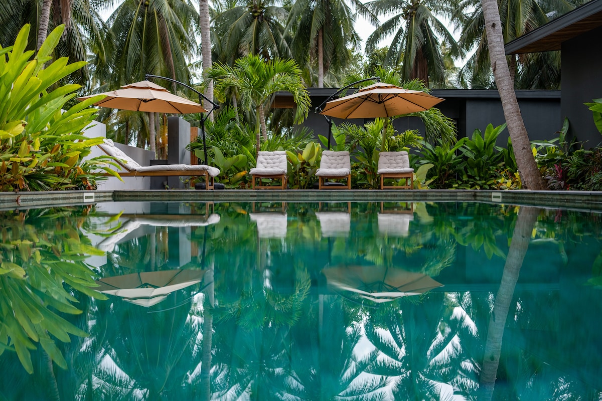 热带生态3张特大床别墅-郁郁葱葱的花园和泳池