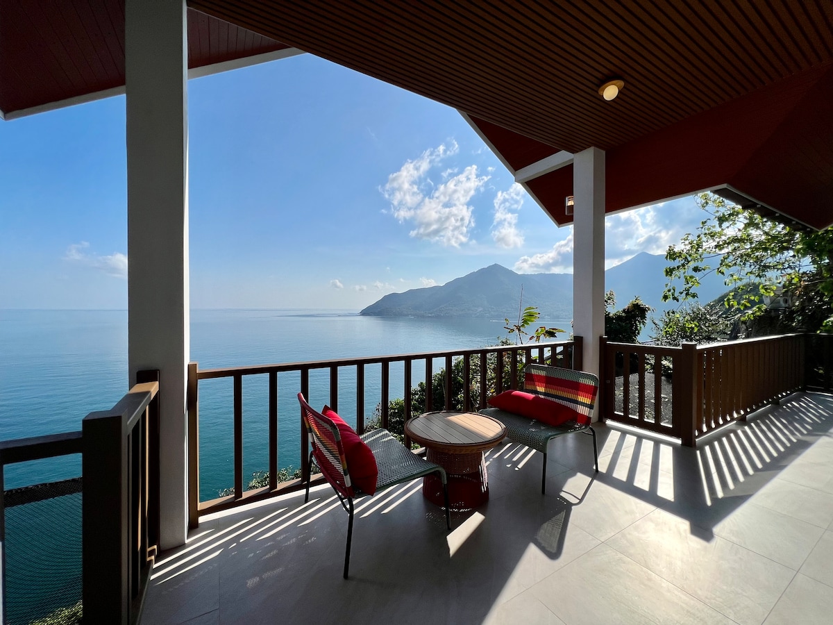 4BR Beachfront villa with full panoramic sea view. 365 days a year of amazing sunset. Located 25m from the most beautiful and untouched beach in Koh Phangan. Go to sleep (sometimes) with the sounds of waves and wake up to the sounds of waves and the birds. direct and private beach access. 2 minutes drive to coffee shops, restaurants, markets. fully equipped villa - to make you feel like home. Our mission is to let you feel sorry for leaving. 2 SUP Paddles and 1 Kayak for the use of our guest