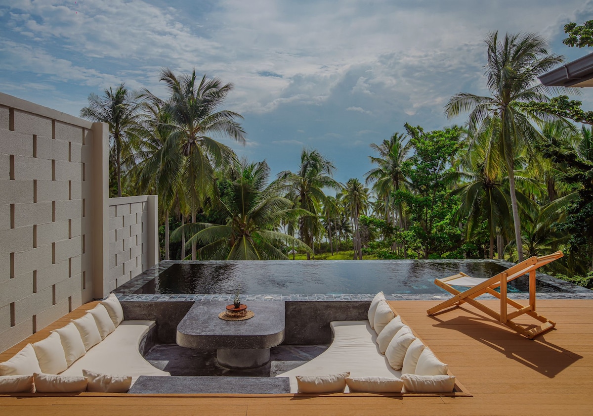 帕岸岛丛林别墅,无边泳池和海景