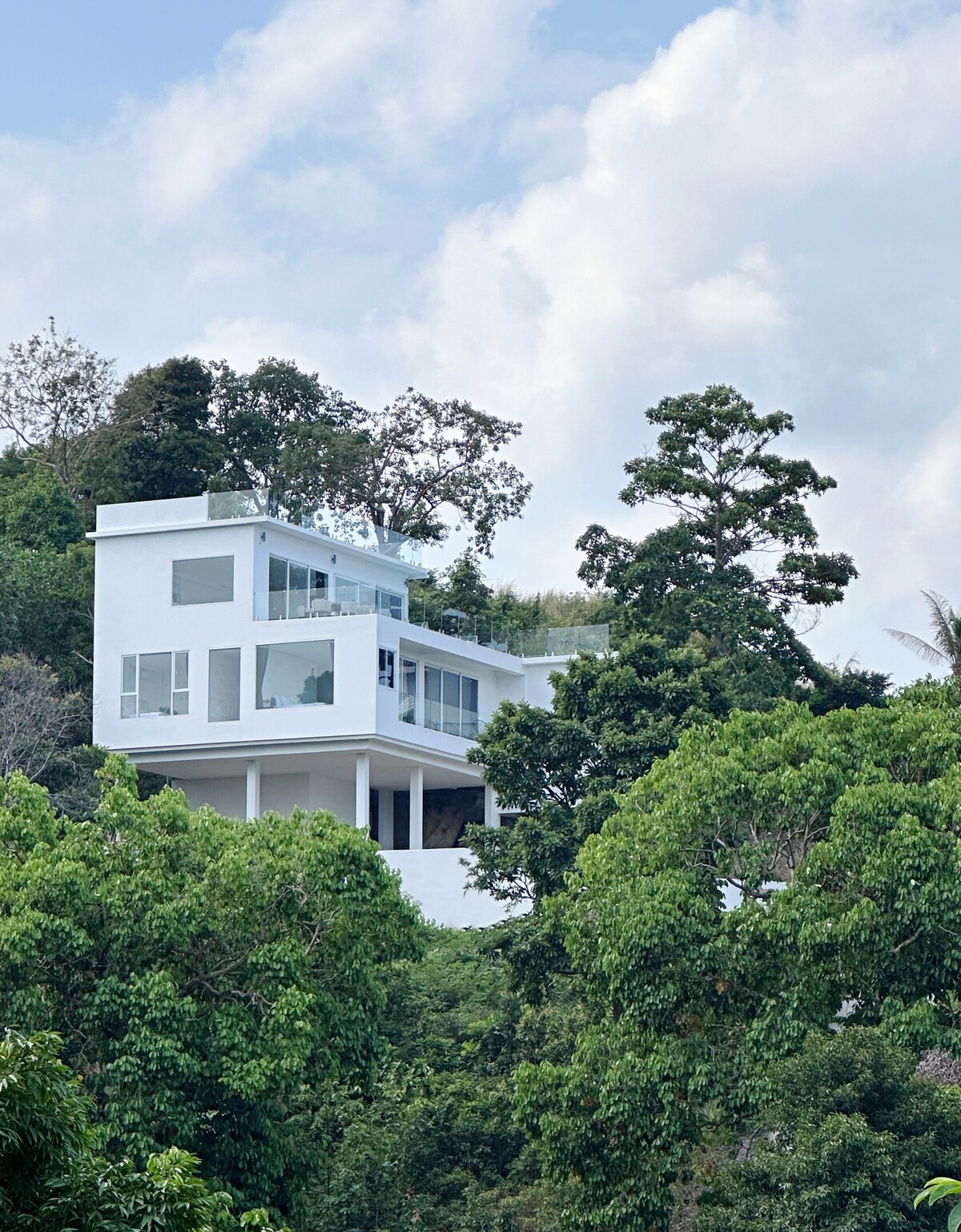 Tous les membres du groupe se sentiront chez eux dans ce logement spacieux et unique situe sur une colline avec vue exceptionnelle sur Koh Samui et le Marine Park. Piscine et 2 Jacuzzis. Villa avec accès privé, entouré de fleurs et de fruitiers sur un terrain de 3000 m2. Grand parking a disposition Le logement dispose de personnel de maison, une femme menage et un manager ( speedboat tour, location motos ou voiture etc..).